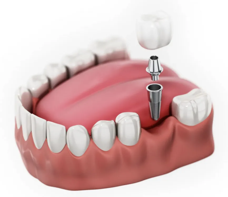 A single dental implant restores the functionality of a single tooth. This is done by placing one implant in the jaw and securing a single crown (tooth) to the implant.